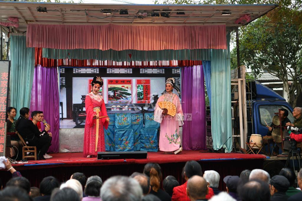 2019年11月17日,湖北省通城县非遗传承人张李吴在演出非遗传统剧种“打锣腔”《游春》。