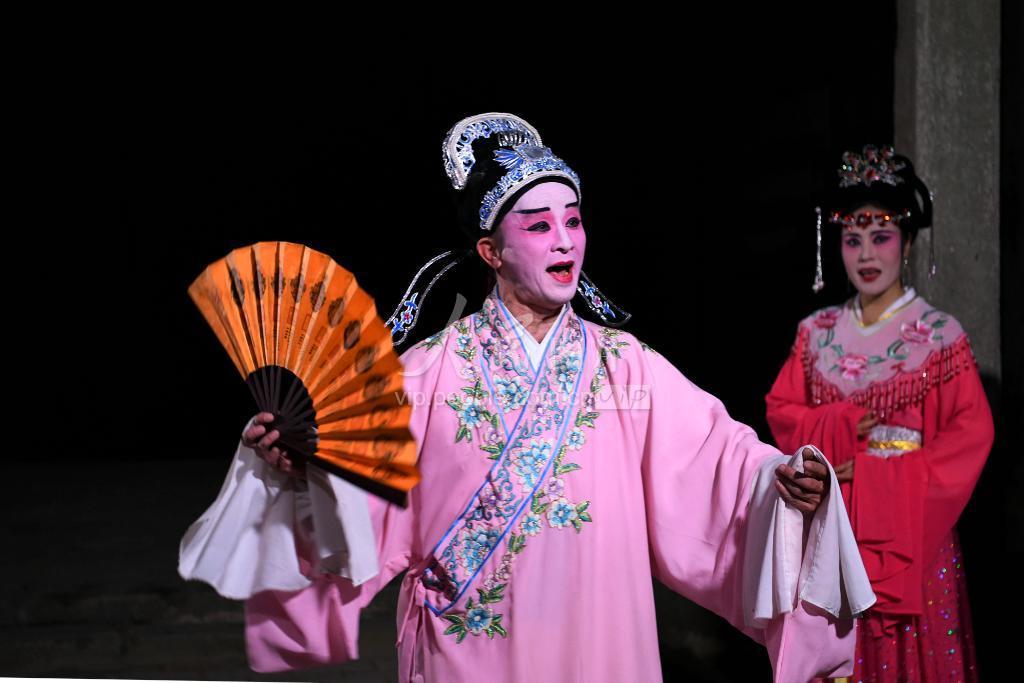 2019年11月17日,湖北省通城县非遗传承人张李吴在演出非遗传统剧种“打锣腔”《游春》。