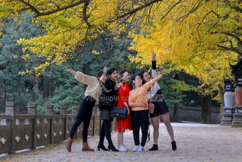 上传时间: 2019-11-21 19:57:22 图片说明: 2019年11月21日,市民们在宁波天童景区银杏树下自拍。