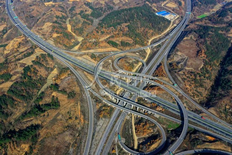 2019年11月21日,无人机拍摄宁西铁路、浩吉铁路、呼北高速与213国道、209国道,在河南省南阳市西峡县西坪镇镇区穿插而过。 位于豫、鄂、陕三省五县(河南省三门峡市卢氏县、淅川县、西峡县,湖北省郧县,陕西省商洛市商南县)结合部的河南省南阳市西峡县西坪镇是中原通向西北的“桥头堡”,素有“豫西南门户”之称。新中国成立70年来,特别是改革开放以来,随着国家交通事业的发展,这个偏远的豫西山区小镇逐渐发展成为豫、鄂、陕交界地区的交通枢纽。
