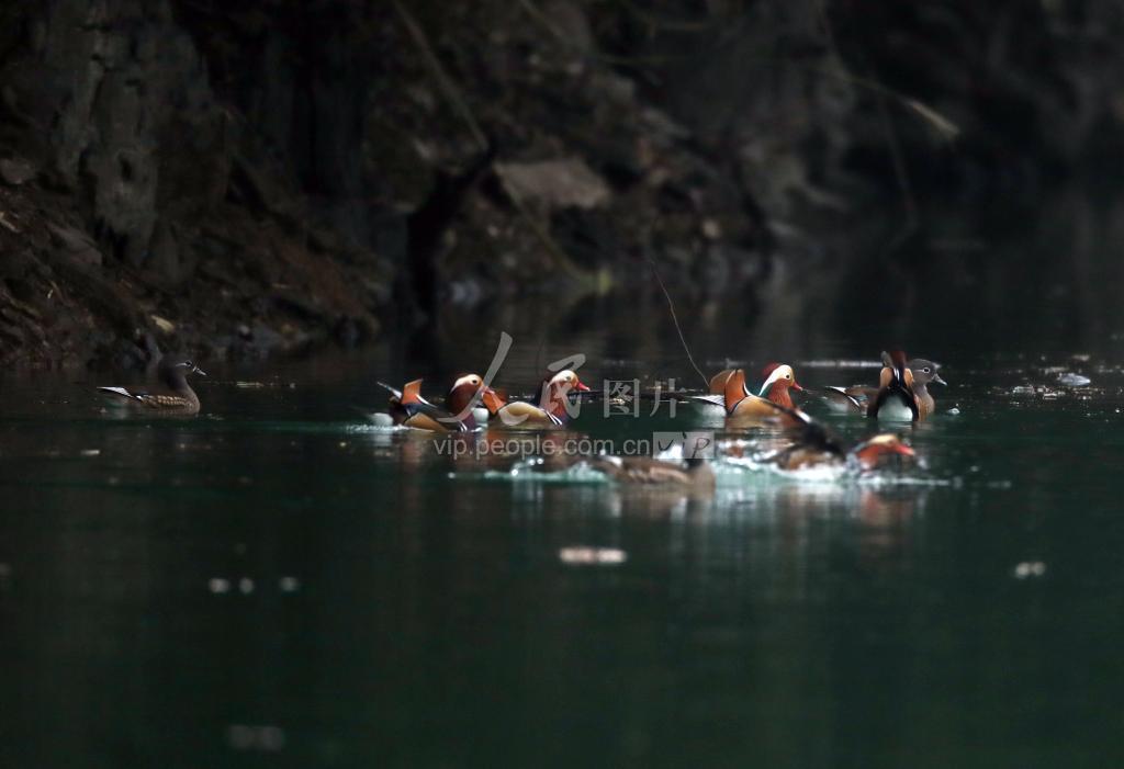 2019年11月24日,珍稀野生鸳鸯在贵州省石阡县鸳鸯湖国家级湿地公园内越冬栖息。
