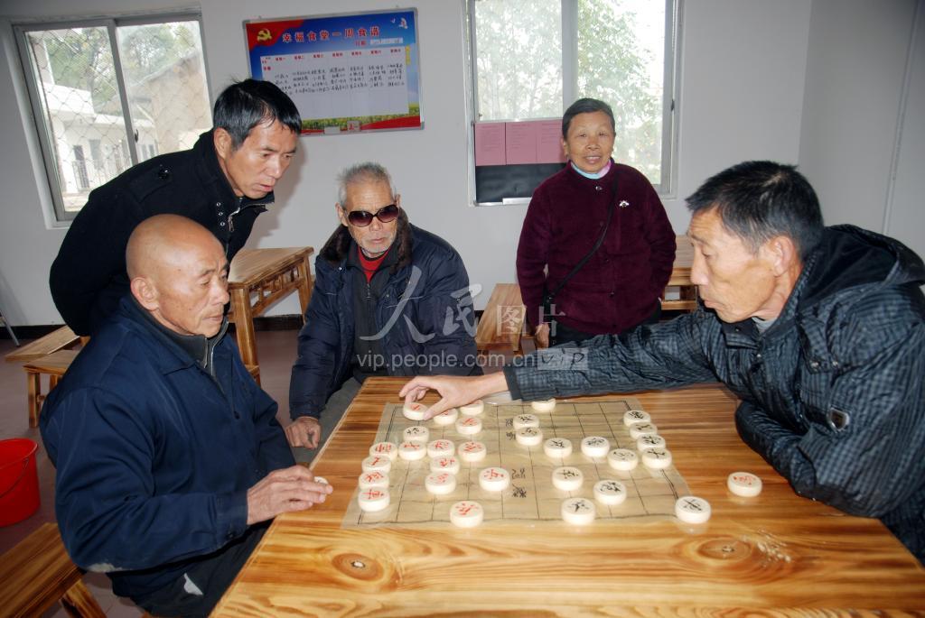 2019年11月29日,江西瑞昌市武蛟乡灌湖村养老服务中心,老人在娱乐室下象棋。