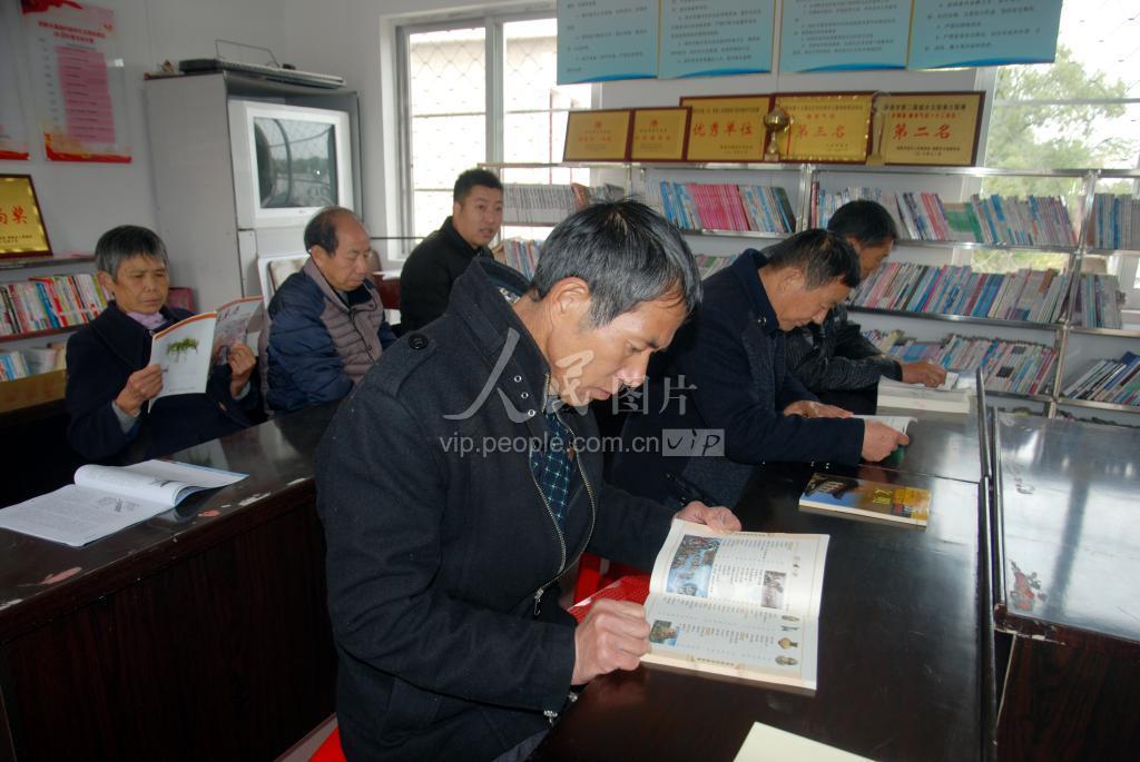 2019年11月29日,江西瑞昌市武蛟乡灌湖村养老服务中心,老人在图书室看书。