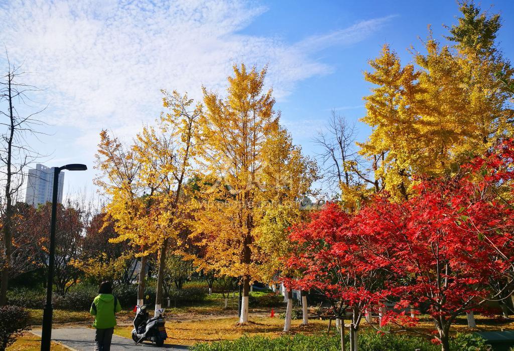 2019年12月4日,初冬时节的古城苏州天气转冷,街头和园林景区一株株银杏树渐泛金黄、枫叶绯红,到处呈现色彩斑斓的迷人秋景。