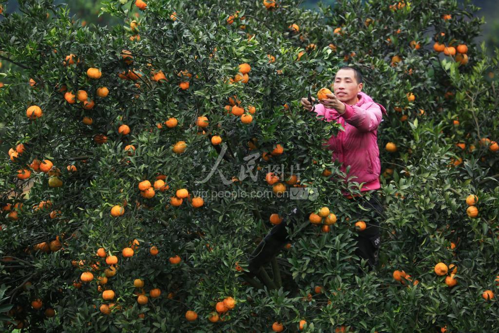 12月5日,村民在贵州省毕节市七星关区生机镇庆坪村采收椪柑。