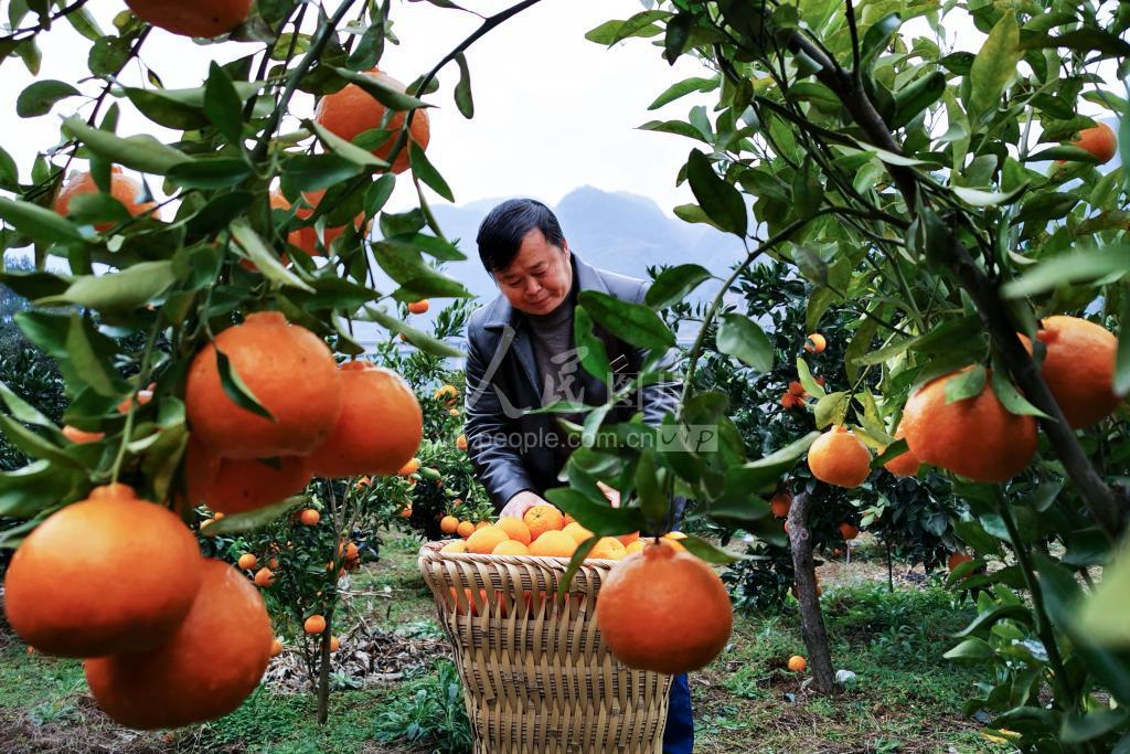 12月5日,游客在贵州省毕节市七星关区生机镇庆坪村体验采收椪柑。