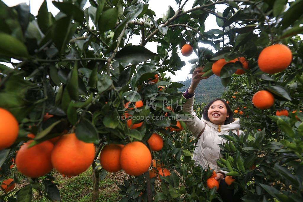 12月5日,游客在贵州省毕节市七星关区生机镇庆坪村体验采收脐橙。