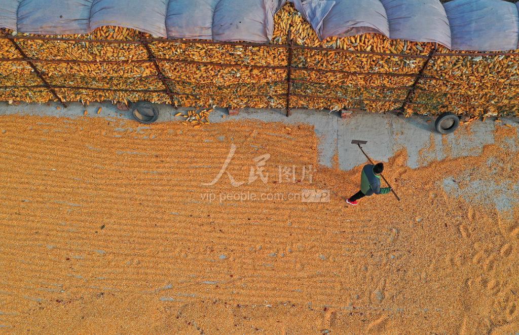 山西襄汾:冬日玉米晾晒忙 映出金色好年景