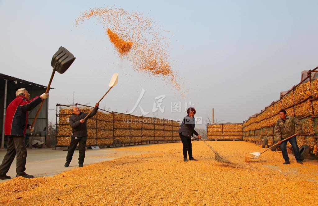 山西襄汾:冬日玉米晾晒忙 映出金色好年景