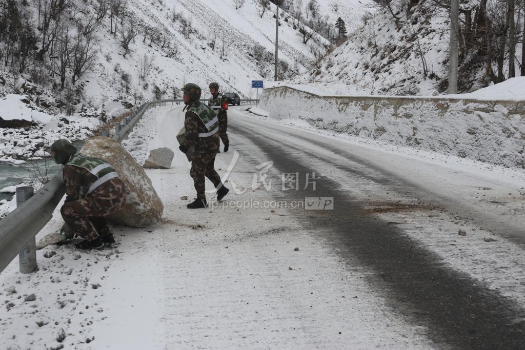 1月5日,武警官兵清理山体落石。