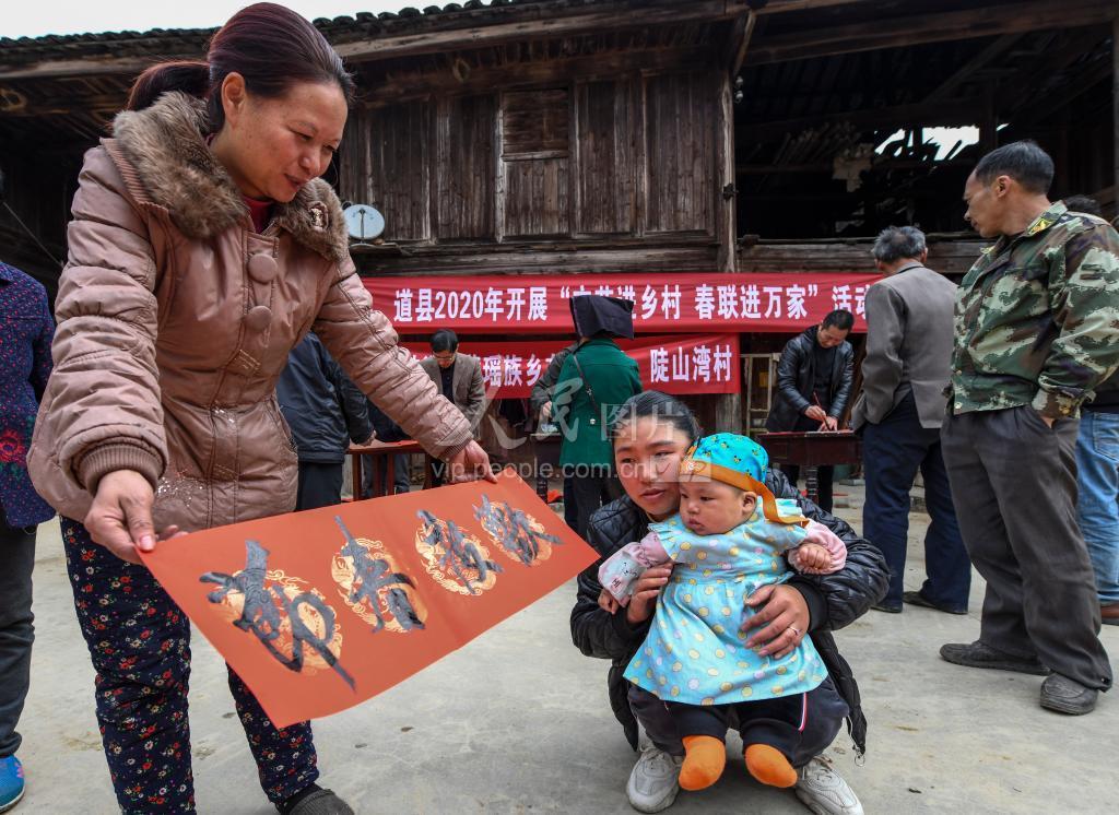 2020年1月8日,湖南省永州市道县宣传部门结合省文联“祖国新春好·幸福进万家”湖湘千名书法家,开展“文艺进乡村,春联送万家”赠春联送温暖活动。书法家们挥毫泼墨为当地村民送上春联、张贴春联,营造了浓浓的年味,喜迎新春的到来。