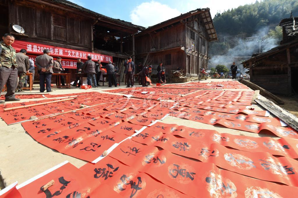2020年1月8日,湖南省永州市道县宣传部门结合省文联“祖国新春好·幸福进万家”湖湘千名书法家,开展“文艺进乡村,春联送万家”赠春联送温暖活动。书法家们挥毫泼墨为当地村民送上春联、张贴春联,营造了浓浓的年味,喜迎新春的到来。
