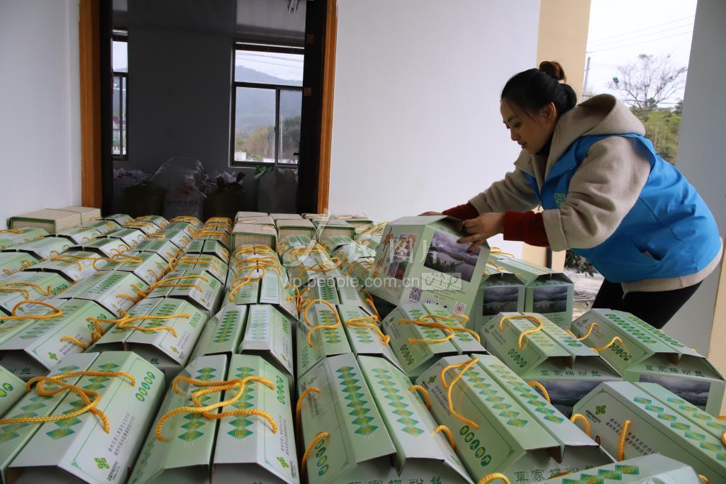 2020年1月8日,在浙江省湖州市吴兴区埭溪镇莫家栅村,粉丝专业合作社经过包装准备销售的产品。