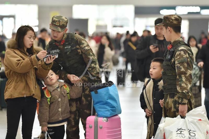 2020年1月10日,武警重庆总队执勤第二支队官兵在重庆北站为旅客提供帮助。