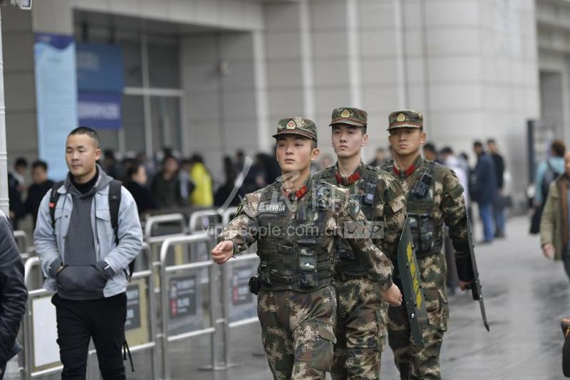 2020年1月10日,在重庆北站北广场,武警官兵在巡逻执勤。
