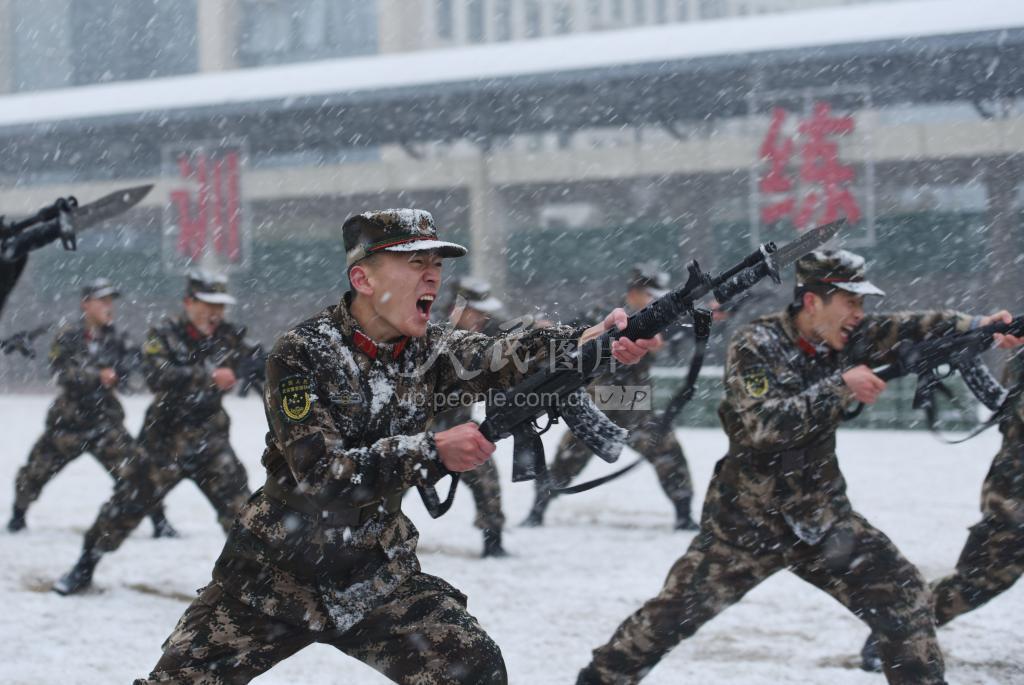 连日来,安徽合肥地区气温骤降普降大雪,武警安徽总队合肥支队抓住练兵时机,组织官兵在雪中进行刺杀、倒功、极限体能等课目的训练,磨砺官兵血性胆气,提升部队在恶劣气候下执勤处突的能力。