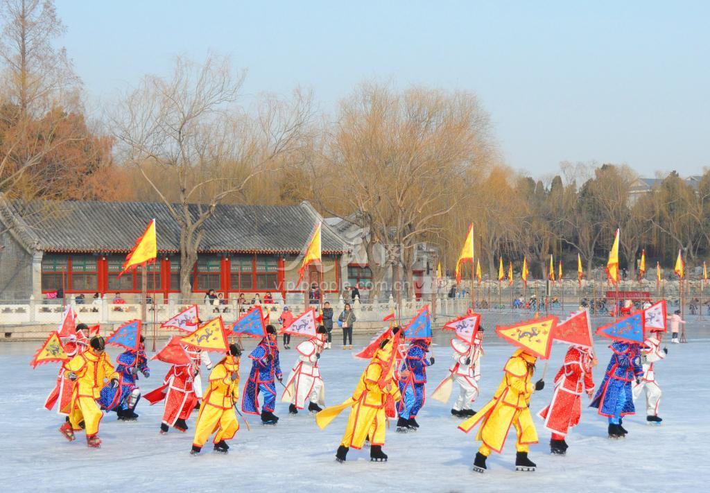 2020年1月15日,北京,北海公园荷花冰场再现清代八旗“冰嬉”表演,精湛的技艺,让观众领略到中国传统文化的魅力。