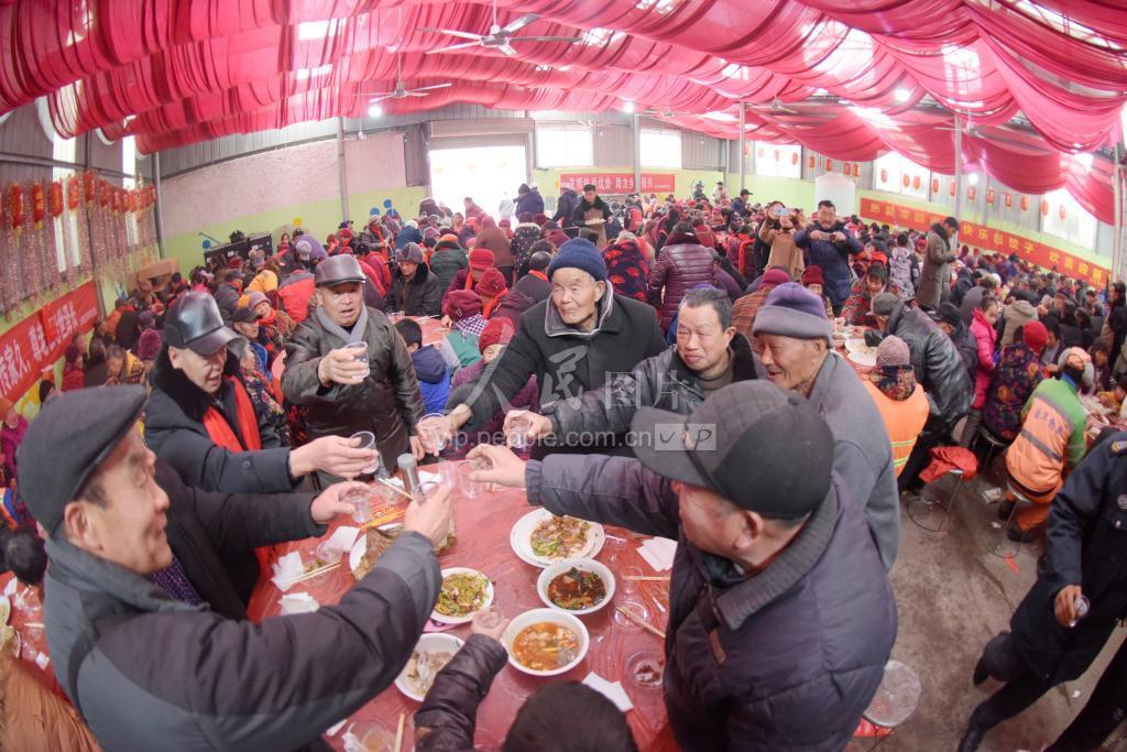 2020年1月16日,江苏省徐州市云龙区大郭庄街道李庄社区的老年活动中心内,张灯结彩,喜气洋洋,村里的600多位老年人欢聚一堂共享饺子宴,提前过了个欢乐年。