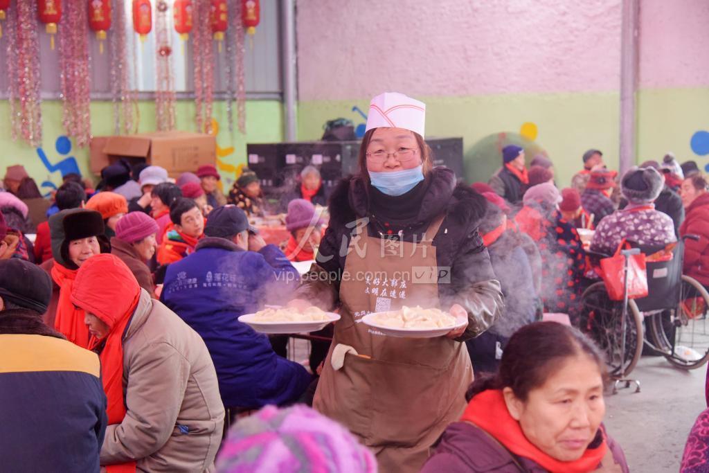 2020年1月16日,江苏省徐州市云龙区大郭庄街道李庄社区的老年活动中心内,张灯结彩,喜气洋洋,村里的600多位老年人欢聚一堂共享饺子宴,提前过了个欢乐年。