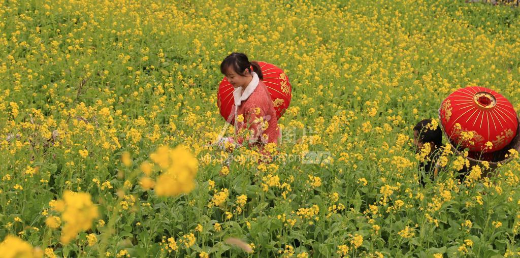 2020年1月20日,农历大寒时节,甘肃陇南市文县碧口镇井地村,一对购置年货父女行走在油菜花绽放的田园。早春临近,有着“陇上江南”美称的文县碧口水库两岸油菜花开始绽放,为新春的白龙江畔点缀上金黄色彩。