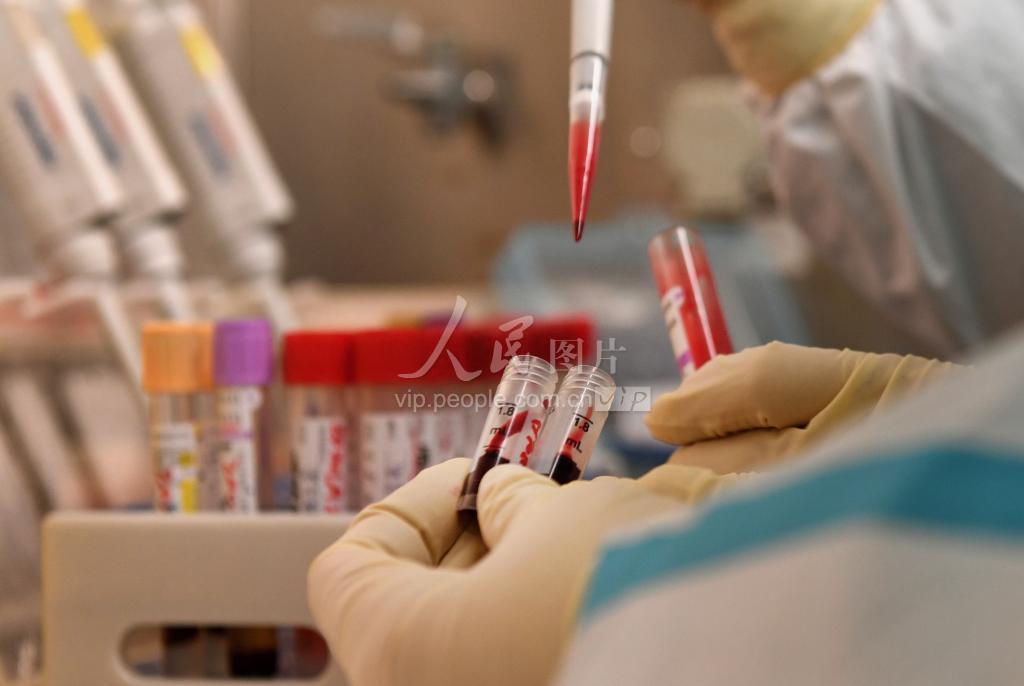 2月4日,实验室检测人员正在分装全血样本,送省疾控中心进行进一步研究。