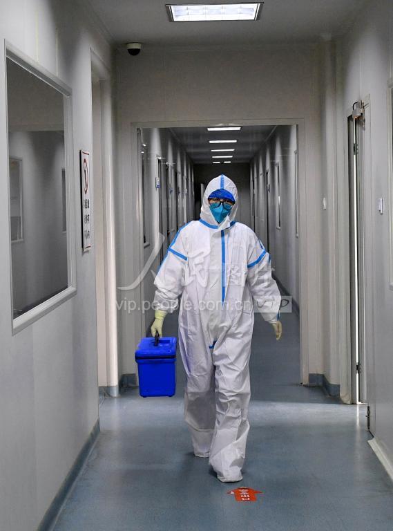 2月4日,实验室检测人员正在运送各县区疾控中心送来将要进行新型冠状病毒核酸检测的疑似病例样本。