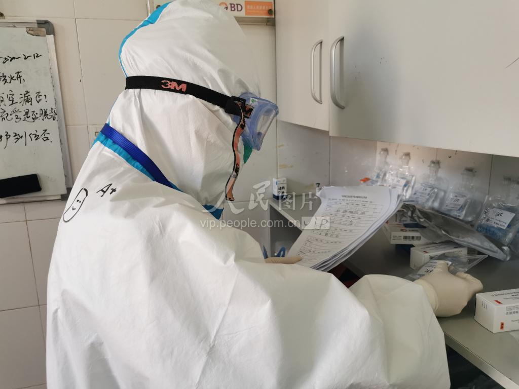 中部战区总医院感染科护士朱新苗正在配置患者所需药品。
