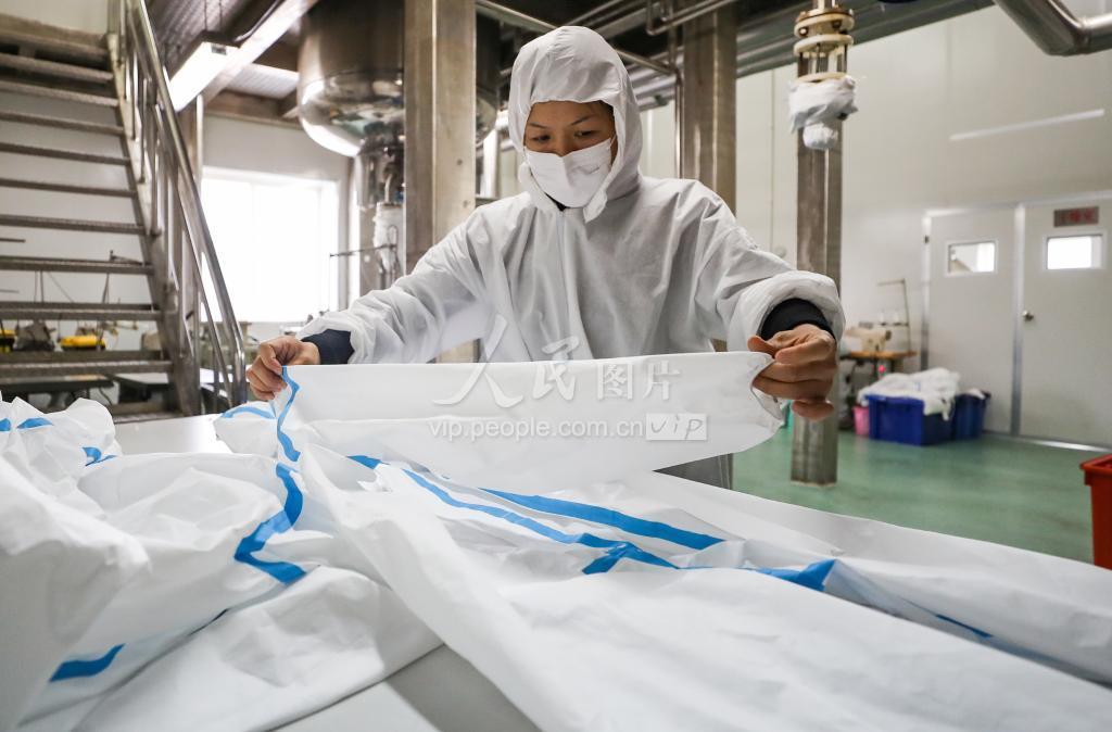 2月14日,工人正在加紧生产医用防护服。