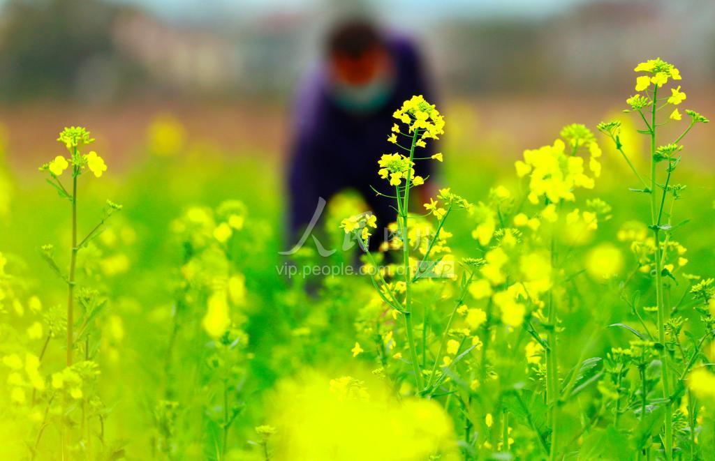 2020年2月14日,在江西省吉安市泰和县沿溪镇仓岭村,农民在油菜田里清沟排水,做好春季油菜田间管理。