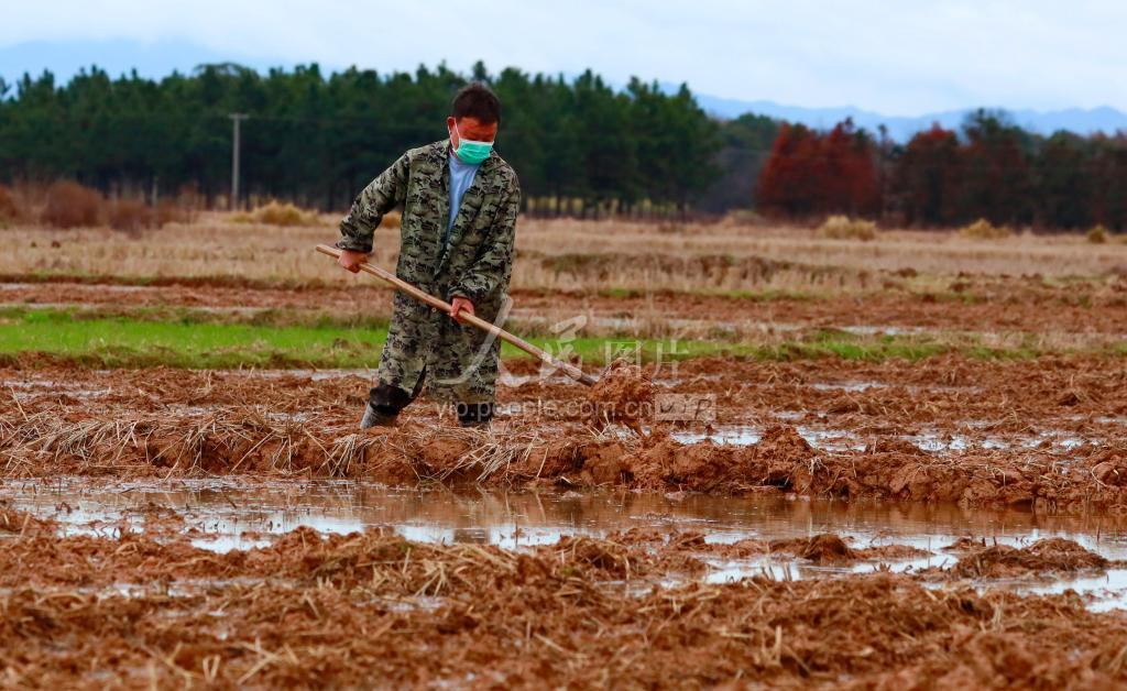 2020年2月14日,在江西省吉安市泰和县沿溪镇仓岭村,农民正在田间劳作。