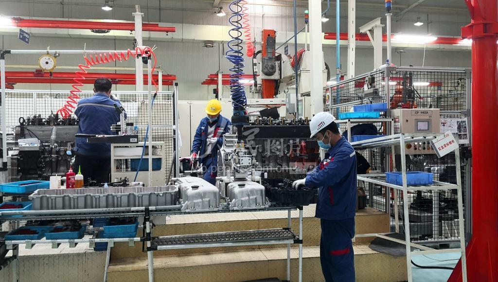 2020年2月14日,位于安徽芜湖三山经济开发区的玉柴联合动力股份有限公司,员工在生产线上工作。