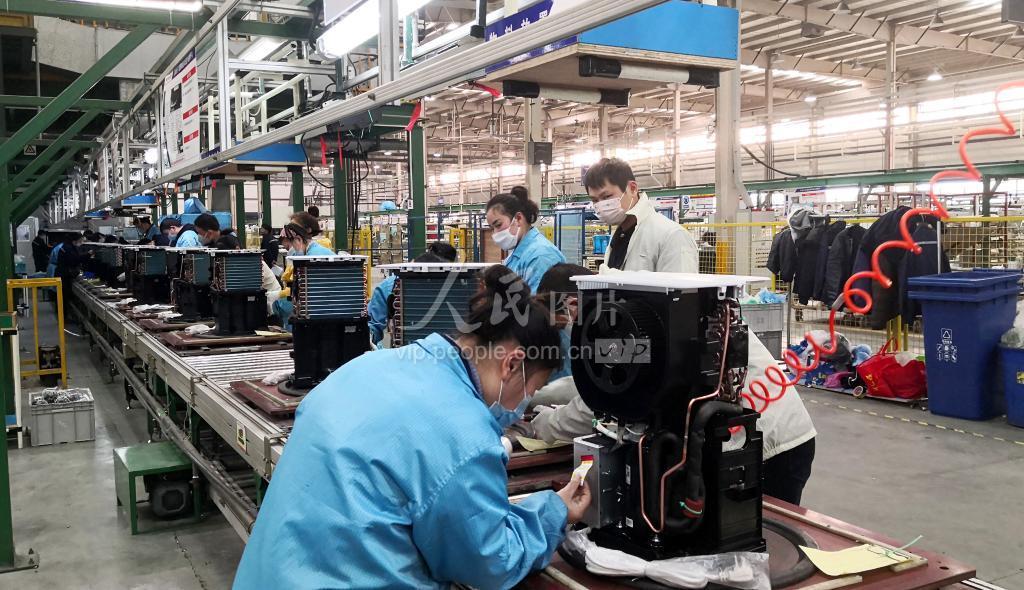 2020年2月14日,位于安徽芜湖三山经济开发区的格力电器(芜湖)有限公司,工人在出口空调生产线上工作。