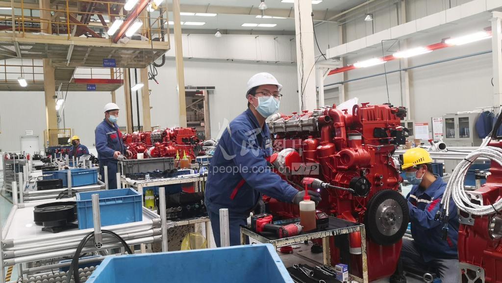 2020年2月14日,位于安徽芜湖三山经济开发区的玉柴联合动力股份有限公司,员工在生产线上工作。