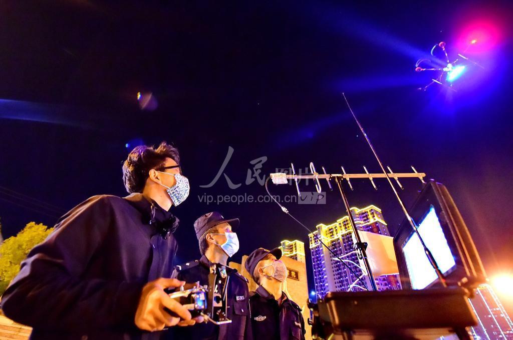 2020年2月13日,江西省赣州市会昌县公安局民警在遥控操作红外热成像测温无人机进行夜间巡查劝导。 据了解,红外热成像测温因其“无接触式测温、高精度体温筛查、异常体温预警”的特性,可实现规模性人群的快速精准体温筛查,安装在无人机上有助于车站、广场、公园、农贸市场等人员聚集地灵活开展防疫排查、人群疏散劝导、体温实时监测,打造一道科学防治新冠肺炎疫情的智能防线。