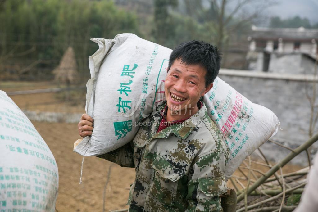 2月14日,在贵州省毕节市大方县星宿乡龙山村,村民正在搬运有机肥。
