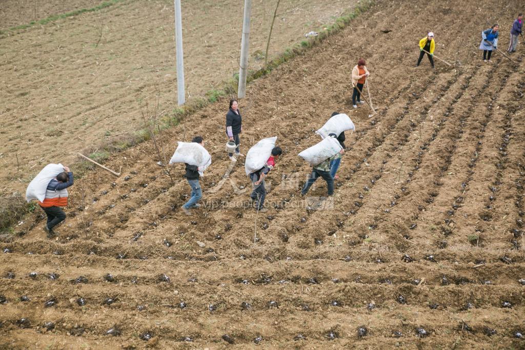 2月14日,在贵州省毕节市大方县星宿乡龙山村,村民正在将有机肥搬运到地里种植土豆。