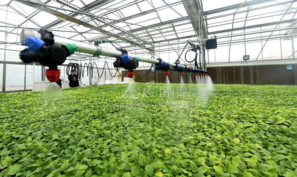 2020年2月15日,在浙江弘丰农业生态有限公司智能育苗基地,农技人员开启自动喷水器为幼苗浇水。