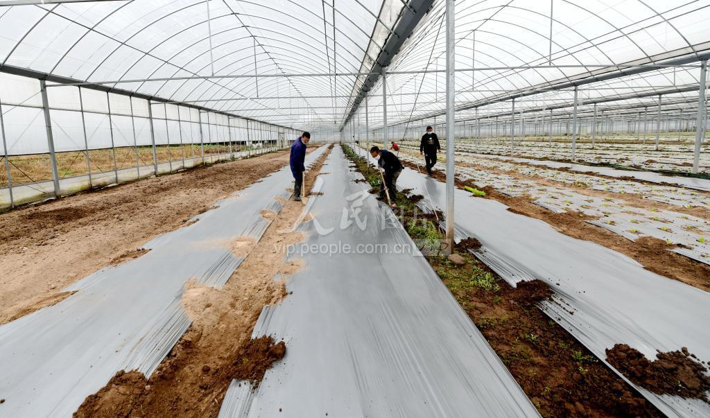 2020年2月15日,在浙江弘丰农业生态有限公司智能育苗基地,农民正在覆盖塑料薄膜,准备栽种蔬菜。