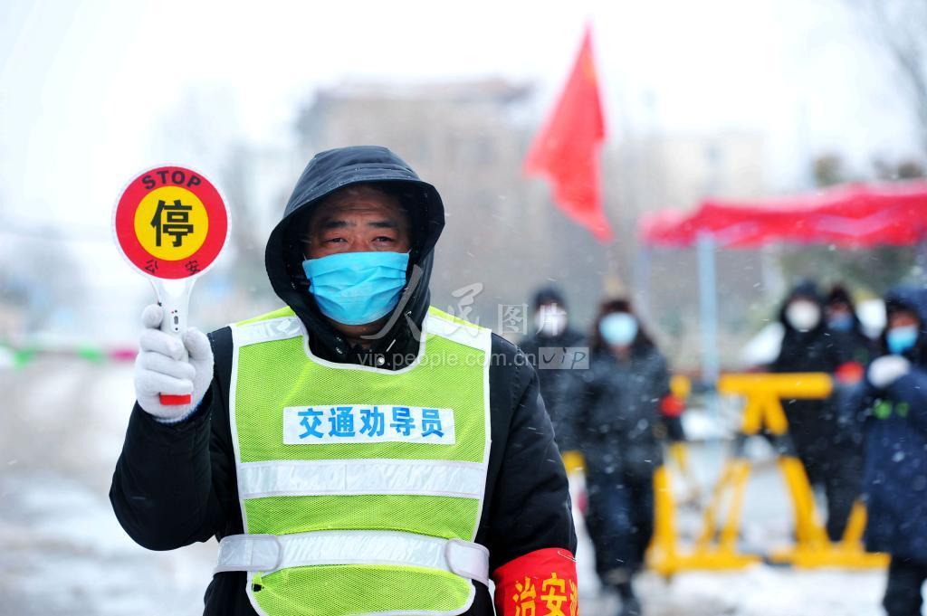 2020年2月15日,一场沸沸扬扬的春雪飘落山东齐鲁大地。在青岛,众多疫情防控人员、环卫个人和蔬菜配送人员,坚守在自己的工作岗位上,顶风冒雪检查车辆、测量体温、清理积雪和为疫情隔离人员配送蔬菜。
