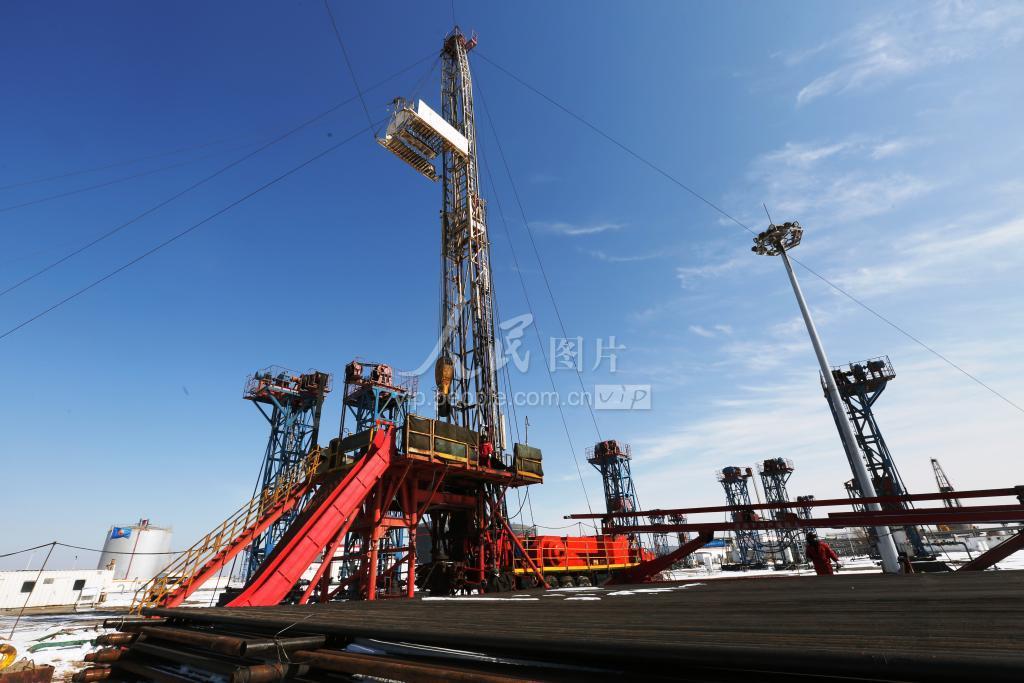 2020年2月15日,在河北唐山,雪后的中石油冀东油田南堡1号人工岛抽油机林立,钻机轰鸣。冀东油田干部员工克服疫情带来的影响,鏖战冰雪生产忙。