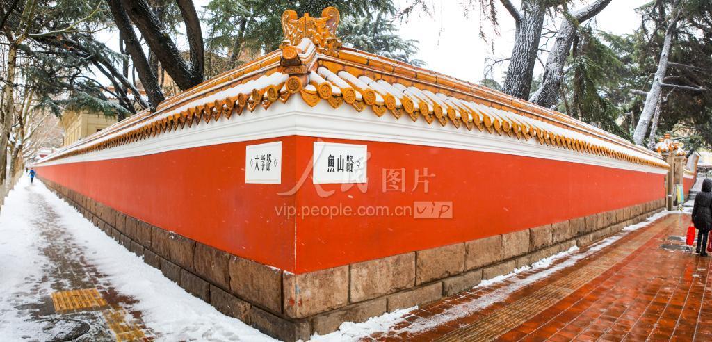 2月15日,青岛普降瑞雪,城区内银装素裹,展现一幅幅雪后美景。图为雪后的大学路和鱼山路路口,这里是青岛著名的网红打卡地。