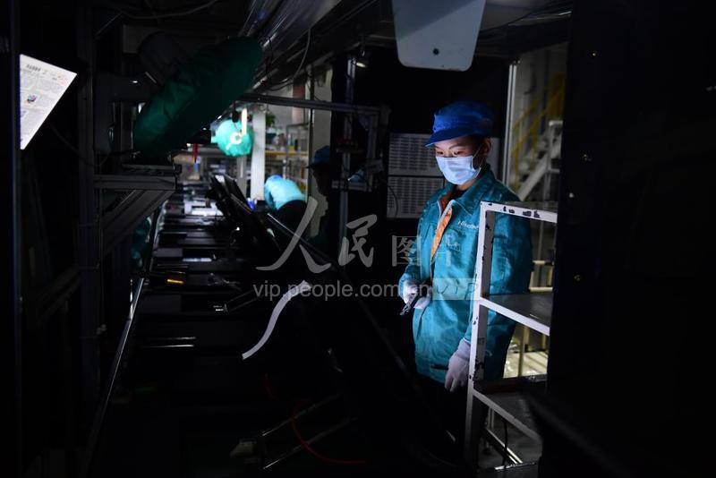 2月17日,贵州省贵阳国家经济技术开发区,贵阳海信电子有限公司生产车间工人们在调试电视机。