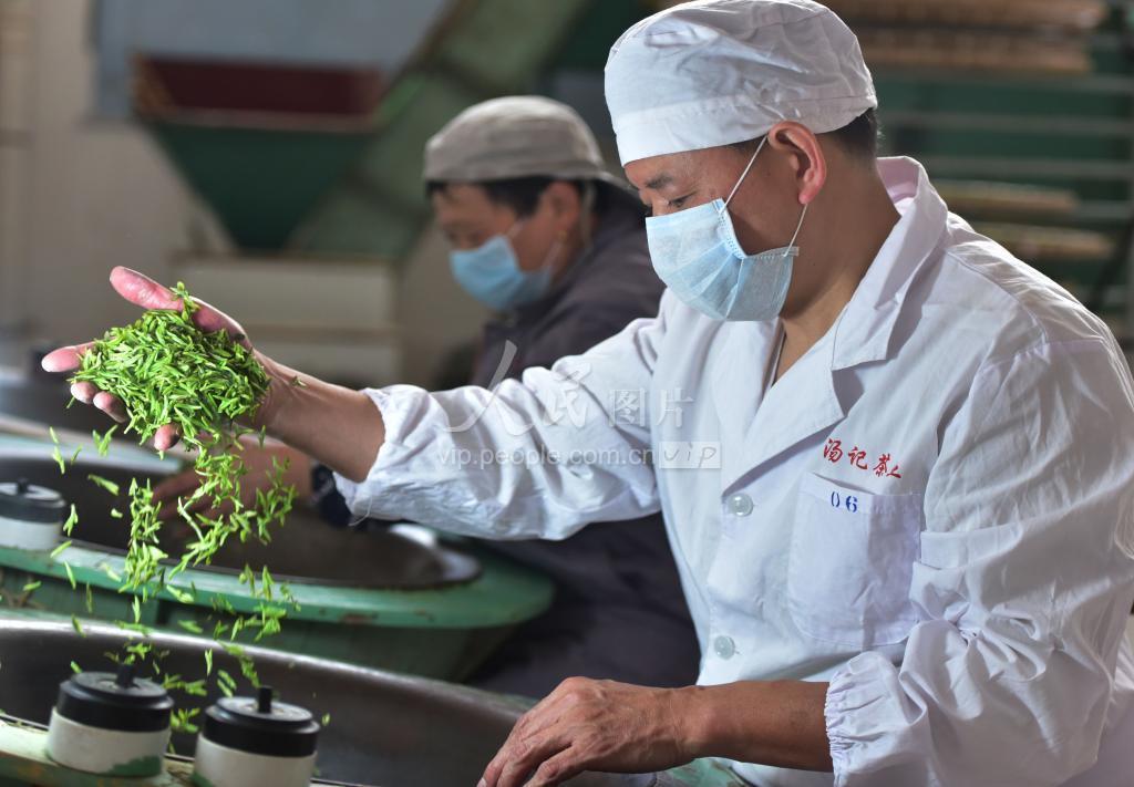 2020年2月23日,浙江武义汤记茶业公司员工边忙着手工炒制新茶,边现场直播售卖。