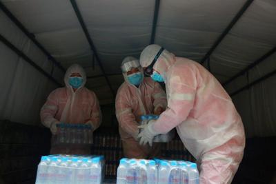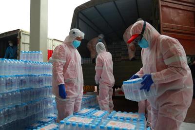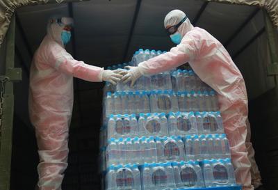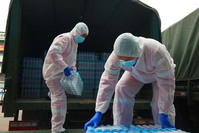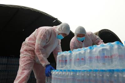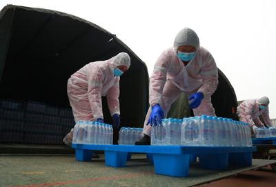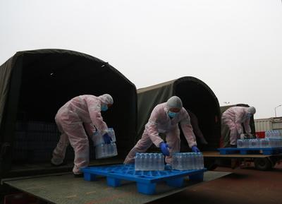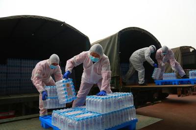 2020年3月2日,应急救援国家队中国安能集团运输分队来到武汉梁子湖水产品加工有限公司将26吨矿泉水运送到雷神山医院。