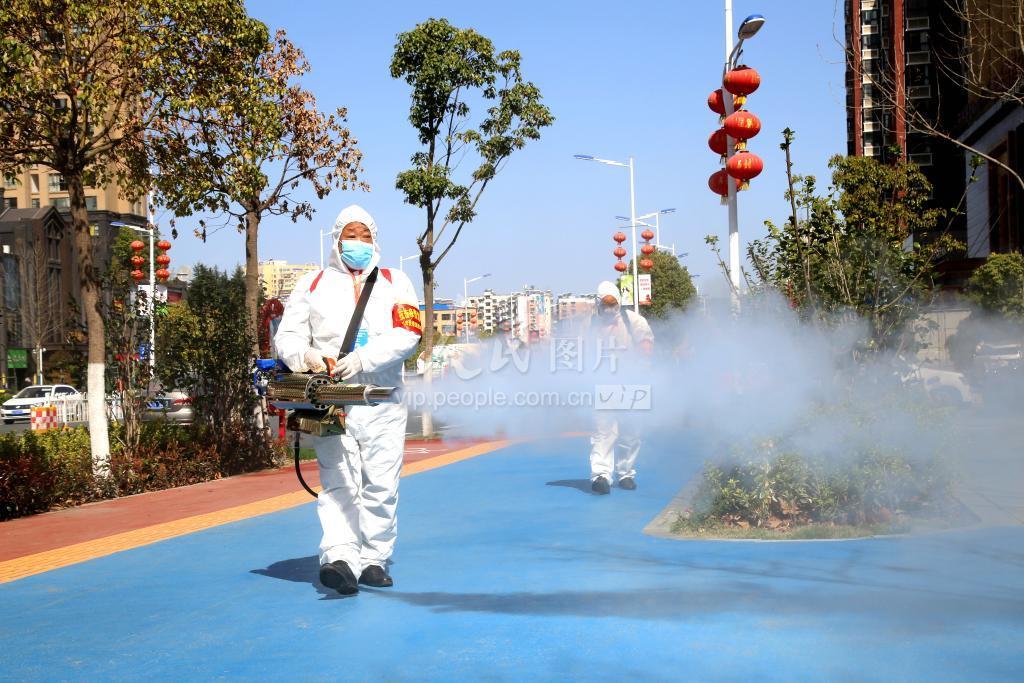 连日来,湖北省十堰市郧阳区退役军人事务局组织退役军人志愿者在城区开展消毒防疫工作。该区自3月13日“新冠肺炎”病例清零后,利用人工喷洒和机械喷雾设备对公共区域和重点路段、楼栋进行全面消毒防疫,确保生产经营各项工作稳定有序运行。