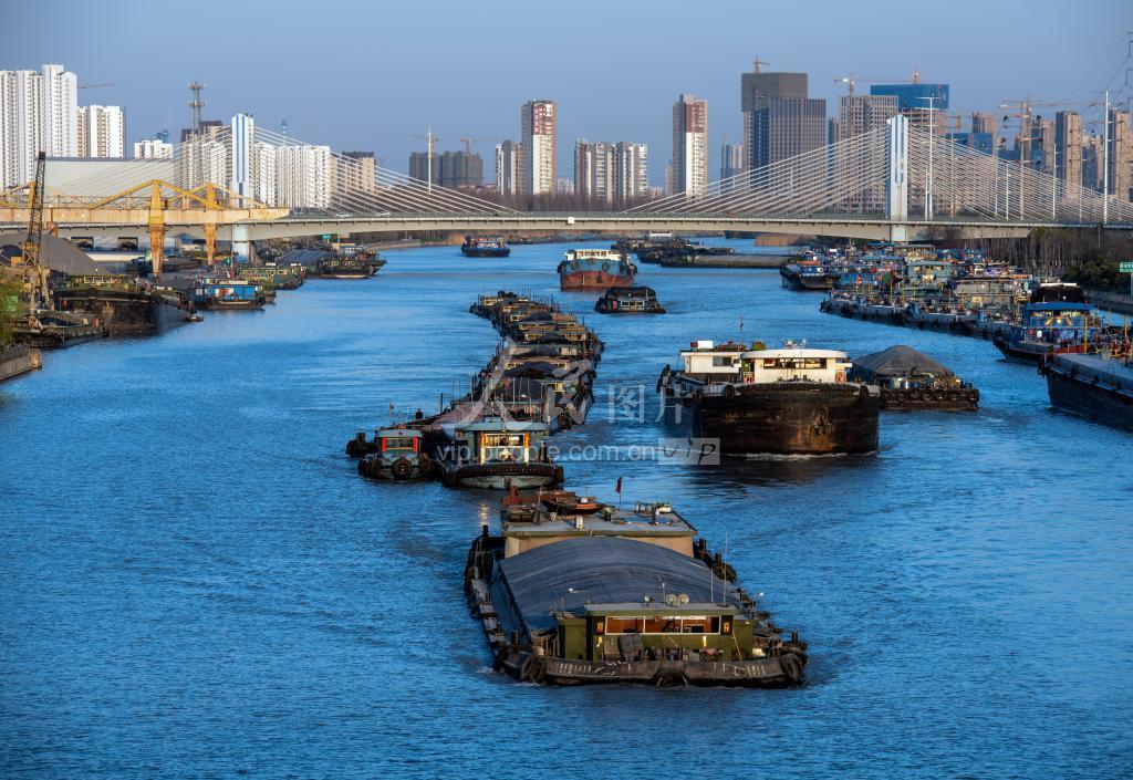 上传时间: 2020-03-20 21:58:22 图片说明: 2020年3月19日,京杭大运河上的货运船只。