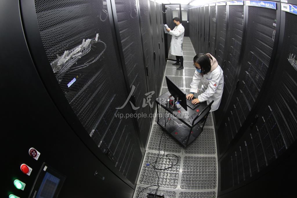 3月24日,中国移动(襄阳)数据中心,网络工程师在华中地区出口带宽最大的新型绿色仓储式数据中心进行网络调试。