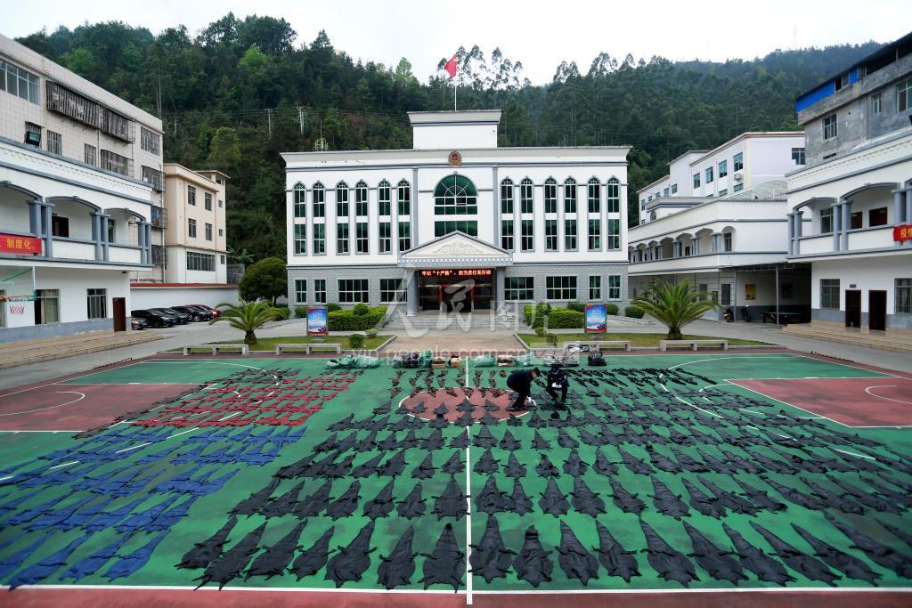 2020年3月14日,广西,民警对查获的鳄鱼及制品进行清点与核对。