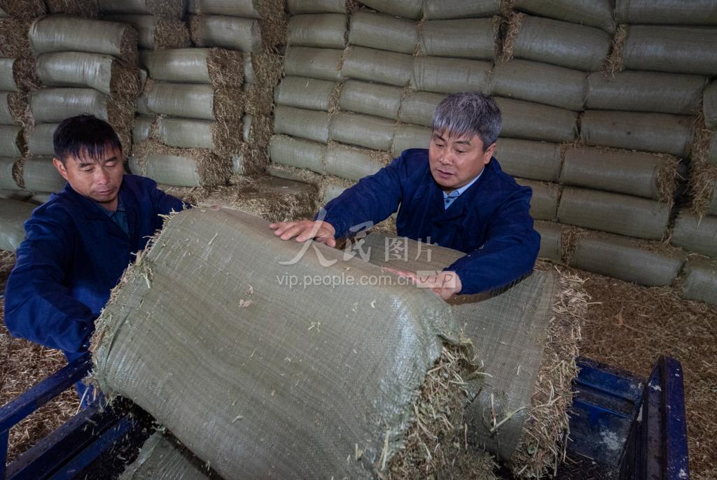2020年3月27日,江西省新余市渝水区山羊养殖带头人张忠平和工人一起在罗坊镇绵山村养殖基地搬运草料、喂养山羊。 2014年年底,张忠平开始从事畜牧养殖。从最开始的200只羊发展到如今2000多只羊的规模,借助“公司+基地+农户+合作社”模式和现代养殖业技术,张忠平的圈养山羊基地年产值达300多万元,带动当地107户贫困户增收,他所创立的畜牧公司也成为省级农业产业化龙头企业和省级扶贫龙头企业。