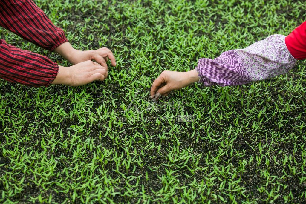 2020年3月27日,村民在贵州省毕节市大方县东关乡育苗中心管护辣椒秧苗。
